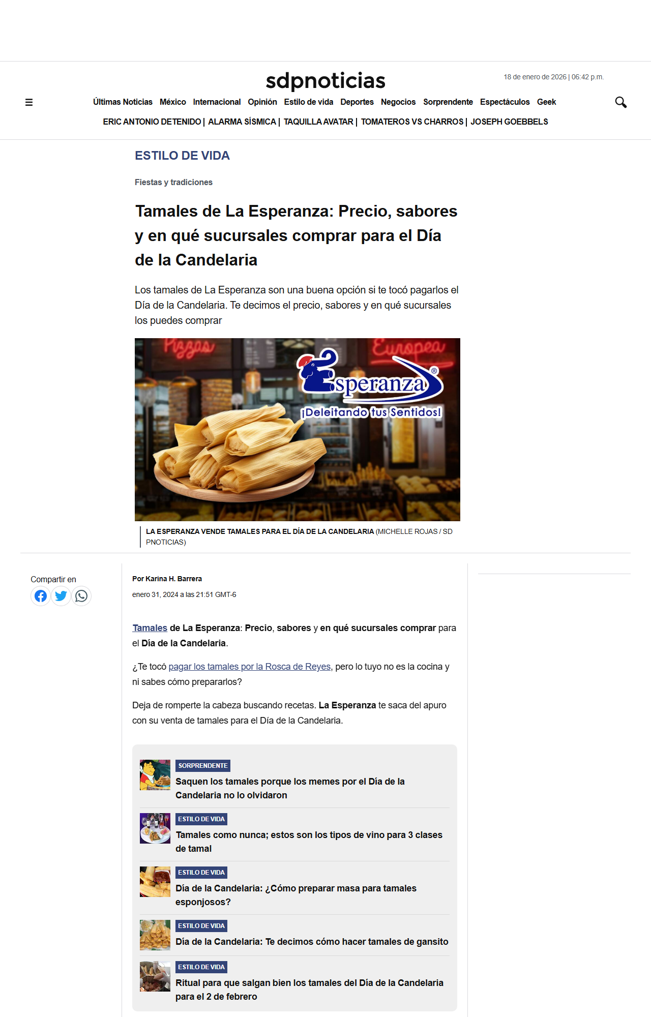 Tal es así que si el viernes 2 de febrero, Día de la Candelaria, te toca pagar los tamales, podrás acudir a alguna sucursal de La Esperanza y comprarlos ahí.