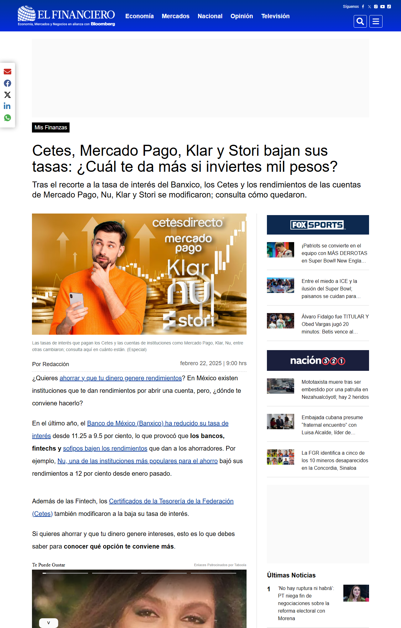 Tras el recorte a la tasa de interés del Banxico, los Cetes y los rendimientos de las cuentas de Mercado Pago, Nu, Klar y Stori se modificaron; consulta cómo quedaron.