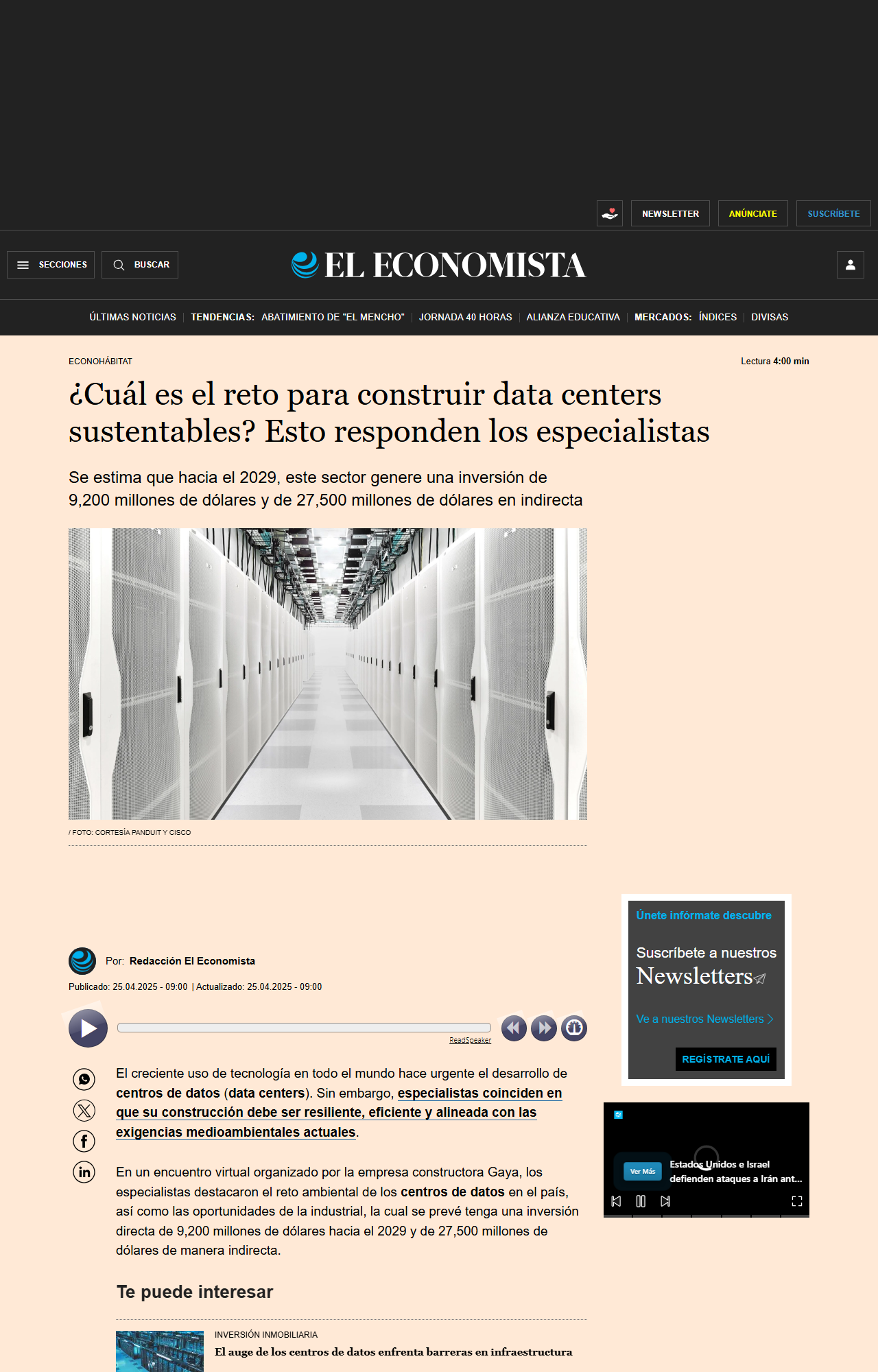 En un encuentro virtual organizado por la empresa constructora Gaya, los especialistas destacaron el reto ambiental de los centros de datos en el país, así como las oportunidades de la industrial, la cual se prevé tenga una inversión directa de 9,200 millones de dólares hacia el 2029 y de 27,500 millones de dólares de manera indirecta.