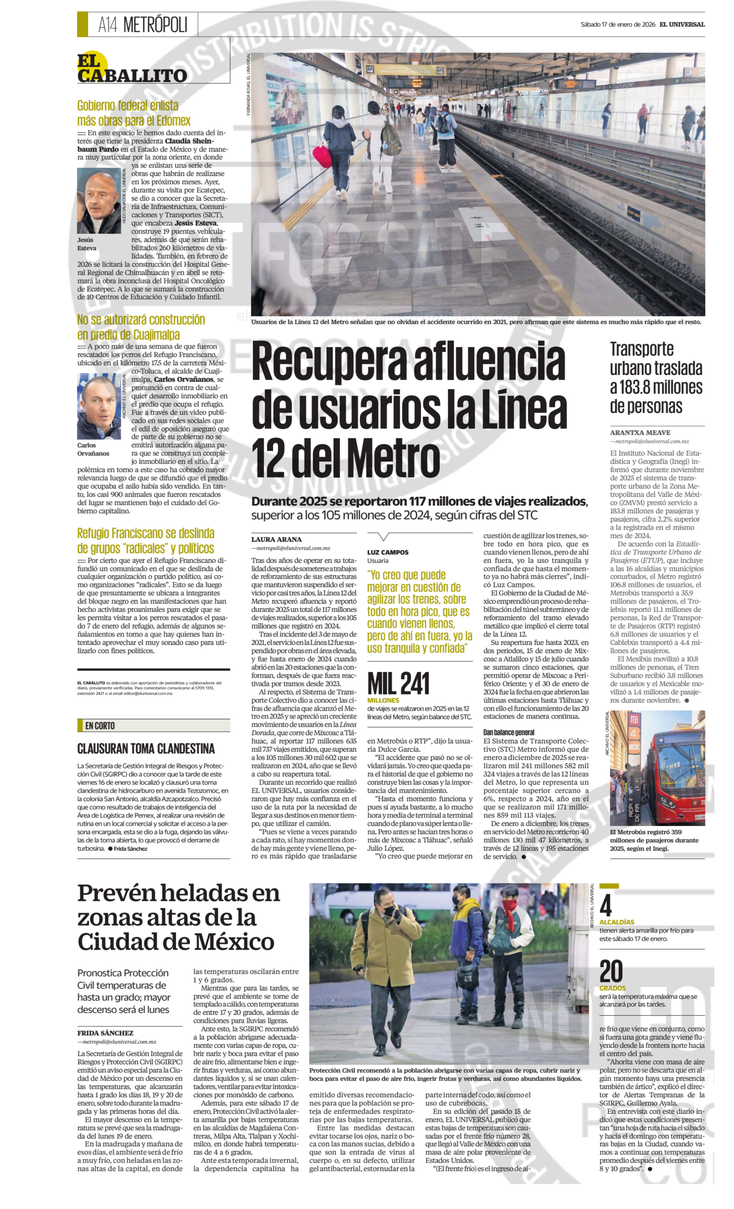 Tras dos años de operar en su totalidad después de someterse a trabajos de reforzamiento de sus estructuras que mantuvieron suspendido el servicio por casi tres años, la Linea 12 del Metro recuperó afluencia y reportó durante 2025 un total de 117 millones de viajes realizados, superior a los 105 millones que registró en 2024.